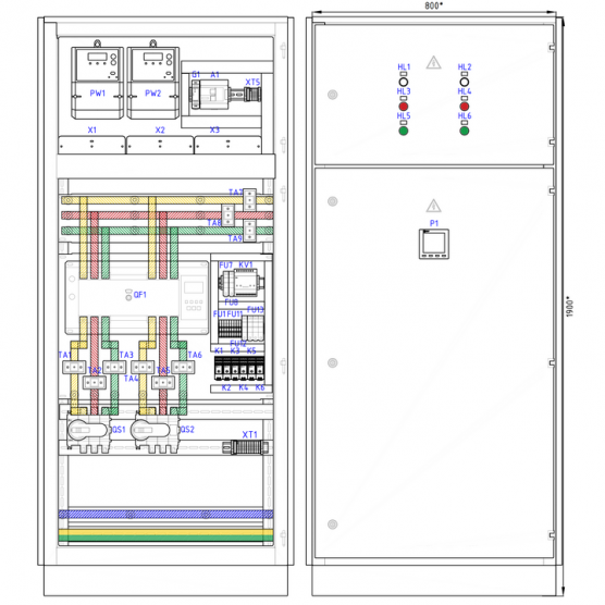 Шкаф АВР 250А 2в1 два ввода (основной и резервный/генератор) на общую секцию на основе моноблочного АВР ТСМ с возможностью диспетчеризации RS-485 и учетом электроэнергии